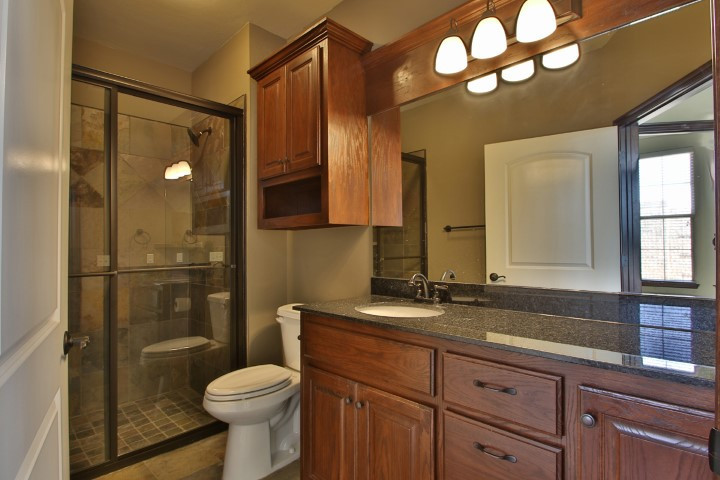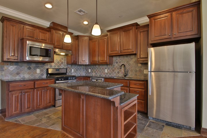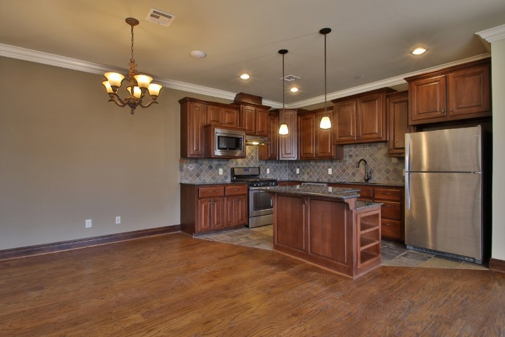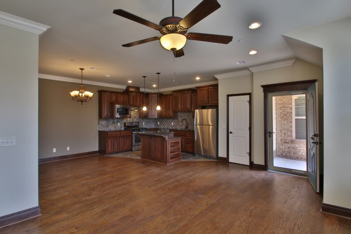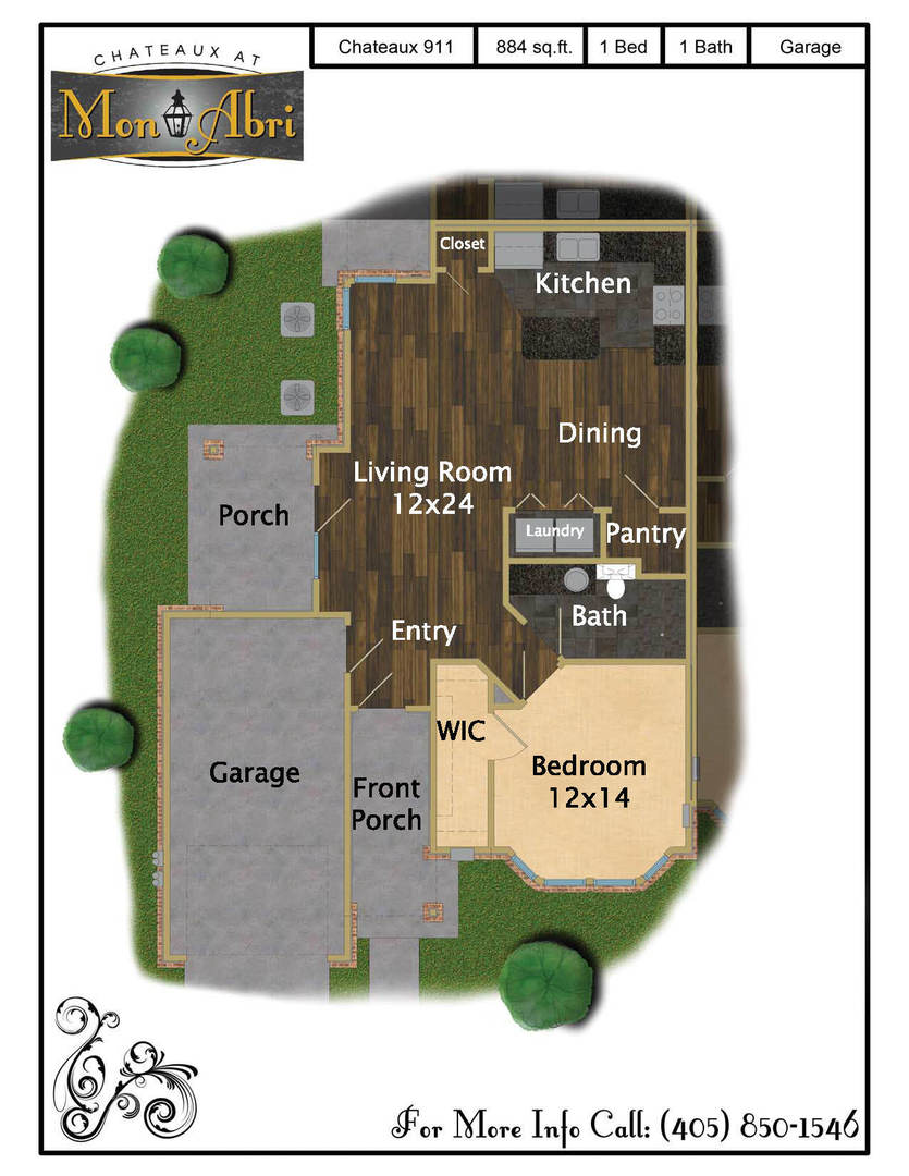 Most homes at Mon Abri are quite large, but this Chateau is on the smaller size by Mon Abri standards at a little under 900 square feet. Despite it's size the chateau still has all the luxury qualities found in the homes at Mon Abri as well as a garage. The sizeable kitchen has granite countertops and stainless appliances and the living dining area has real hard wood floors. If you are looking to minimize your living space but to still enjoy all the amenities and fun to be had at the Chateaux at Mon Abri, then this may be just the home for you. For more information or to schedule a tour, call 405-285-5100.