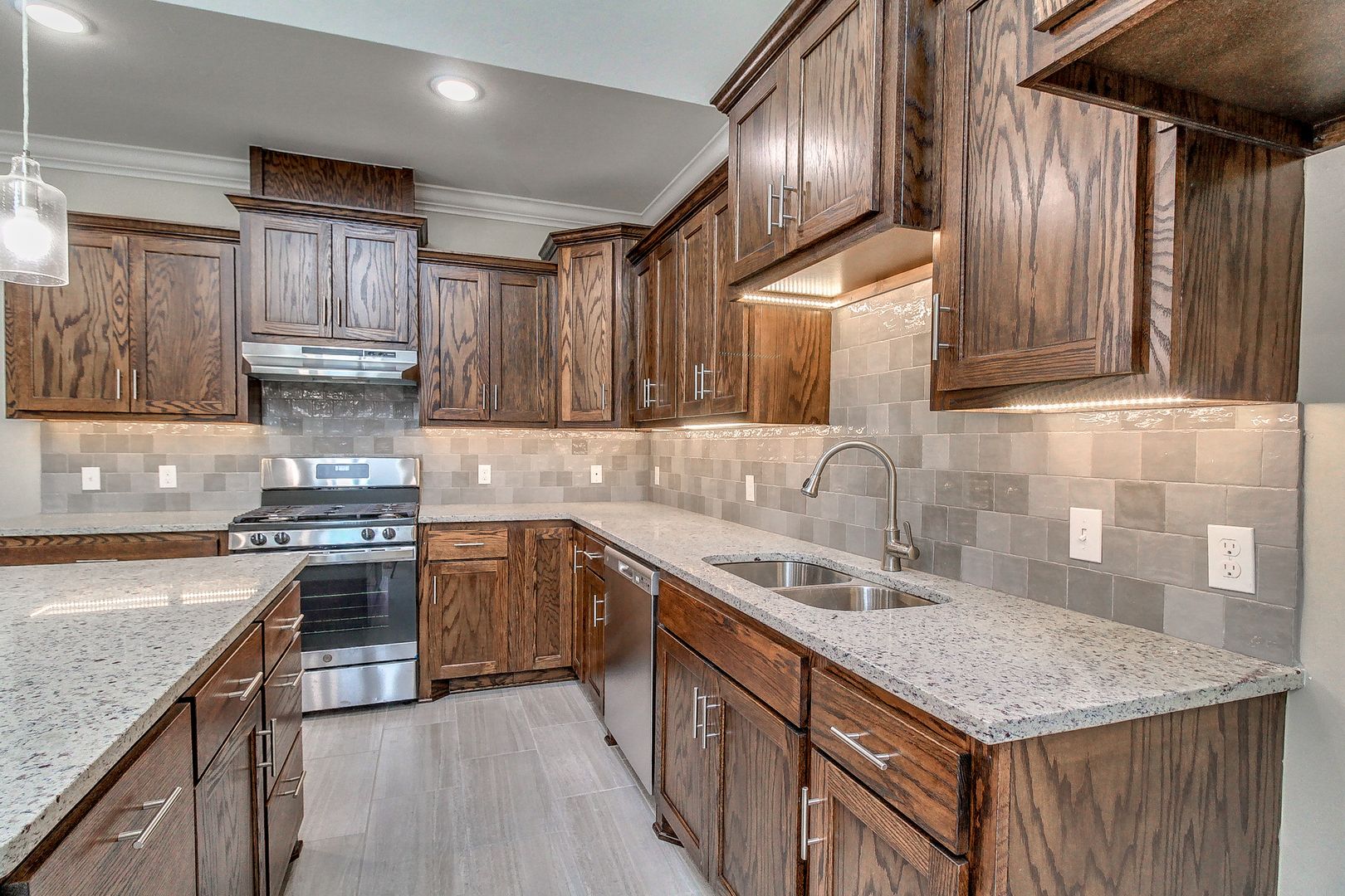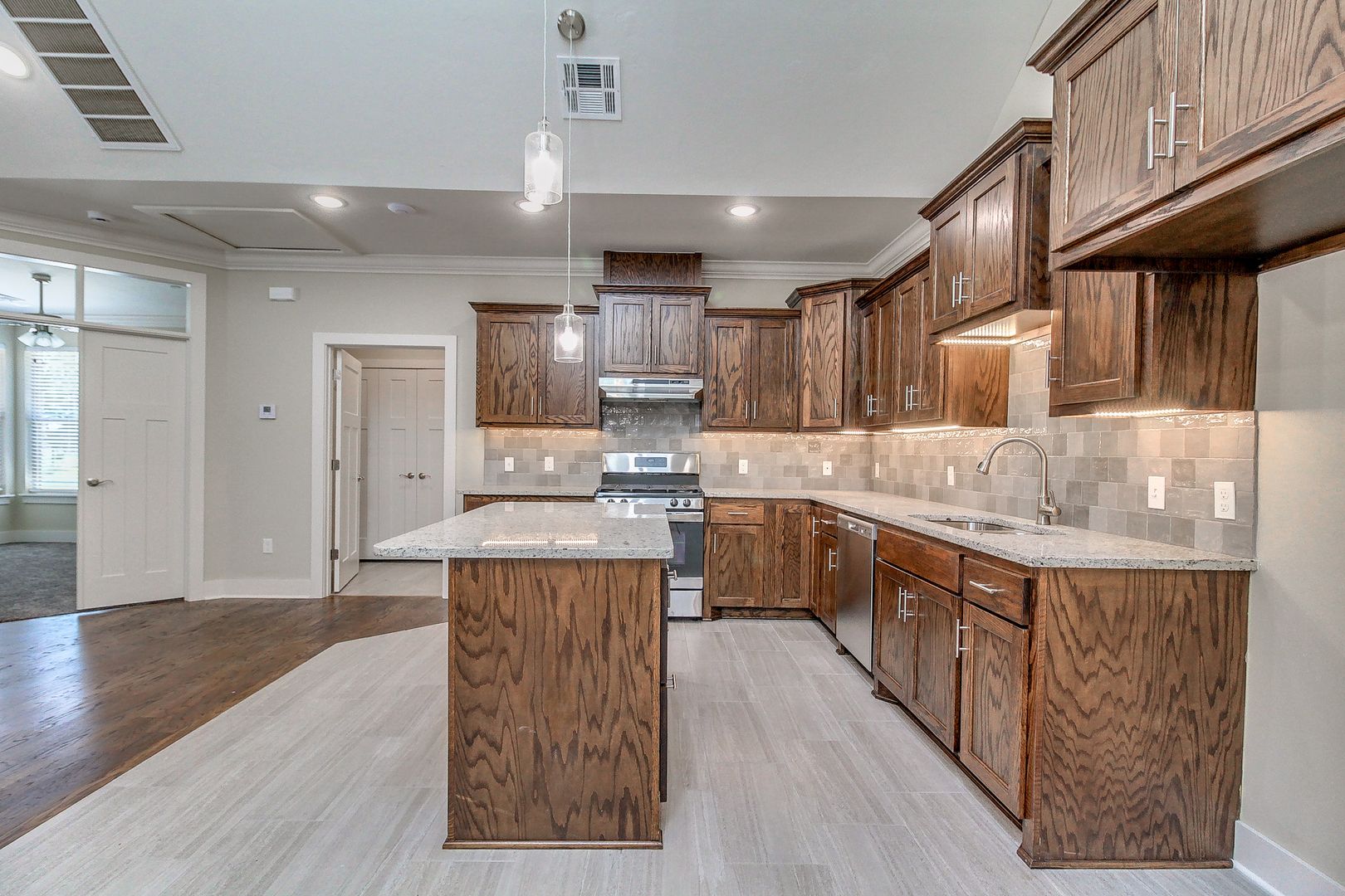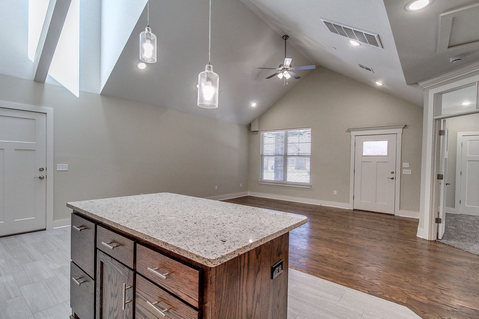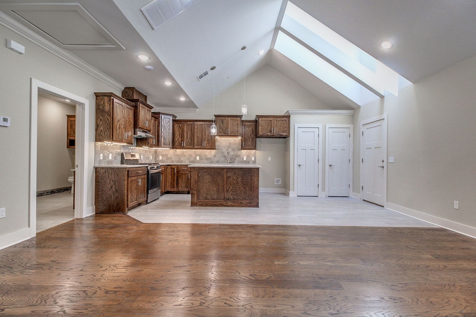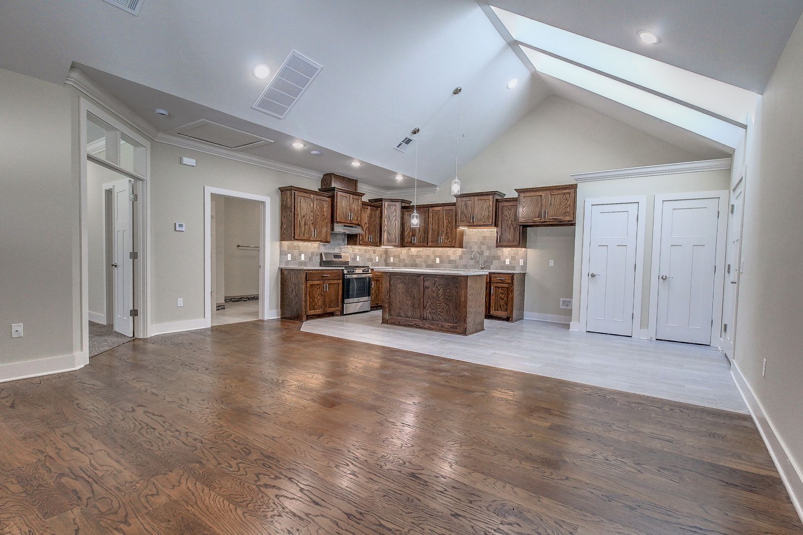 The open layout seamlessly connects the living, dining, and kitchen areas, creating a warm and inviting atmosphere.